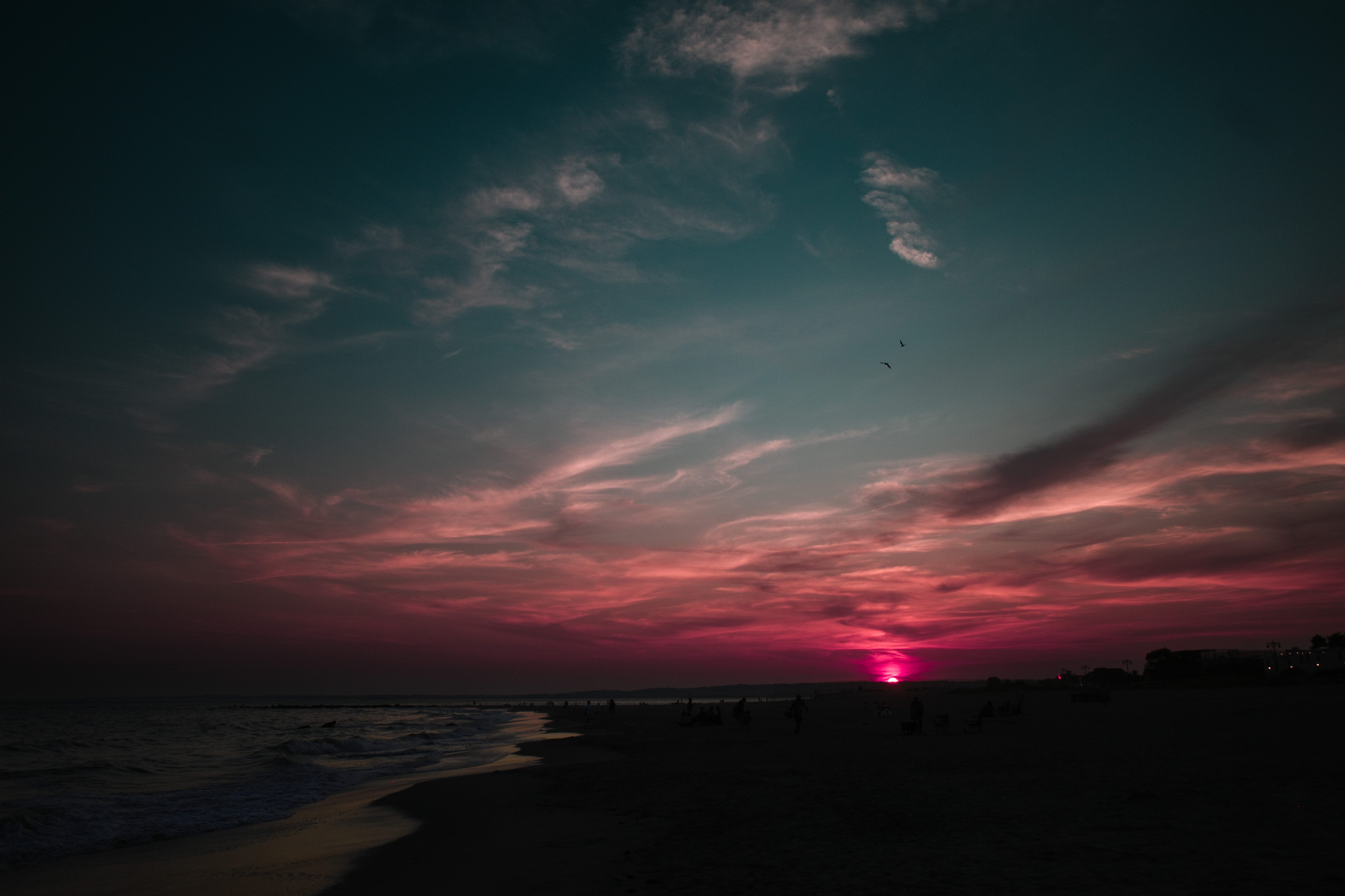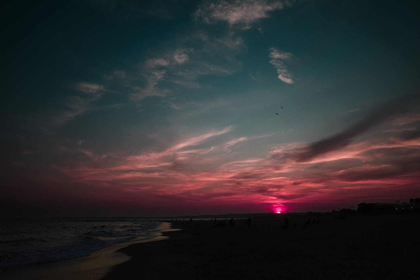 The sunset that night wasn’t gentle. Fire and bruise, a sky collapsing in on itself. Deadly. Though children still shrieked in the surf and lovers hid behind the wind.