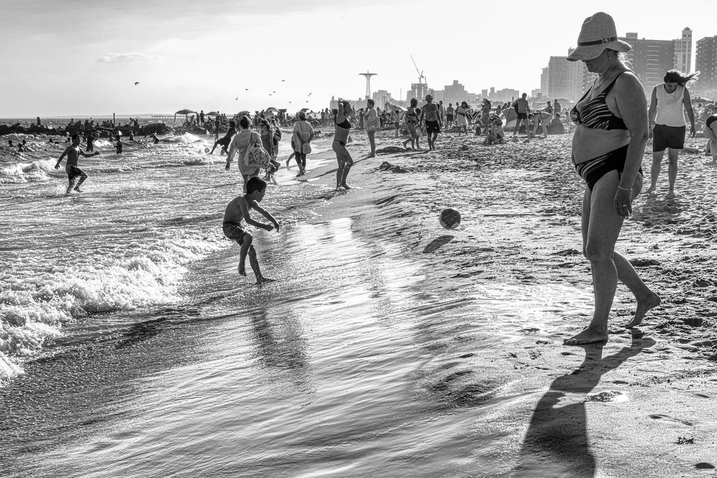 Somehow, I needed to see some of the images in b&w, stripping the beach of its carnival reds and boardwalk yellows. In monochrome, the shore feels older, timeless. 1925 or 2025. In color, though, Coney is undeniably now.